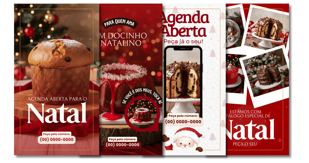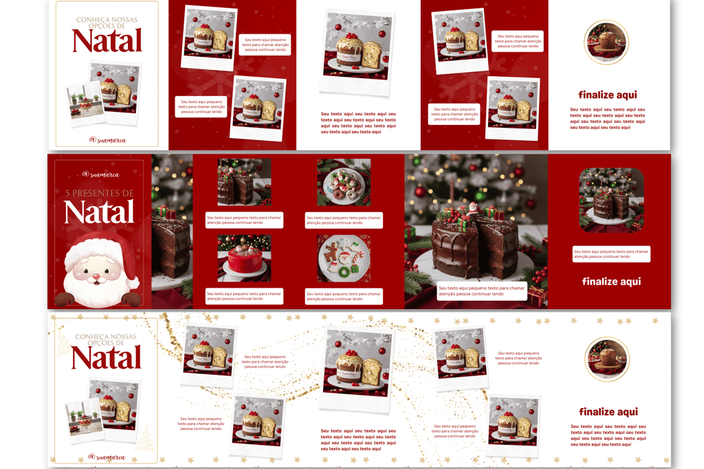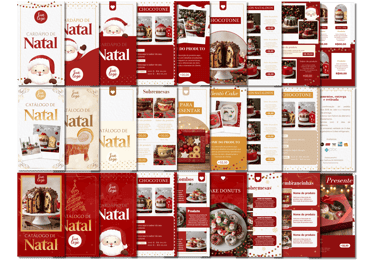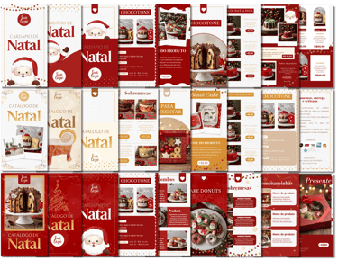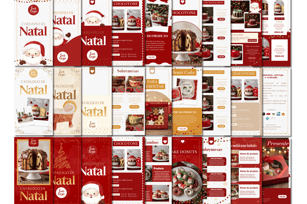 Tenha um cardápio profissional e encantador com o Kit de Catálogo Natalino Editável, são + de 30 páginas prontas no Canva gratuito em 3 modelos perfeitos!